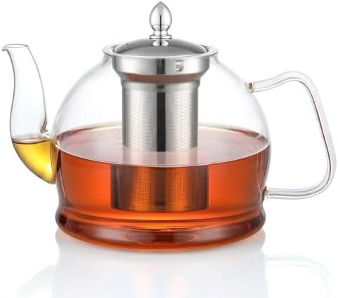 Completely hand crafted teapot, made from heat resistant borosilicate glass, with removable stainless steel mesh infuser for loose teas. Lid fits the tea basket both when inserted or removed. Can be used on stovetop! Great for blooming teas too!