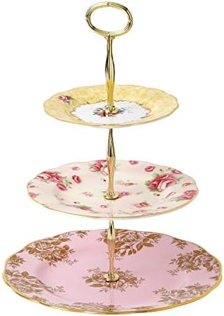 Part of the 100 years of Royal Albert Collection. This three Tier Cake Stand features designs from three different decades – 1960 (Golden Rose), 1980 (Rose Blush) and 1990 (Bouquet) Packaged in a beautiful Royal Albert presentation box.