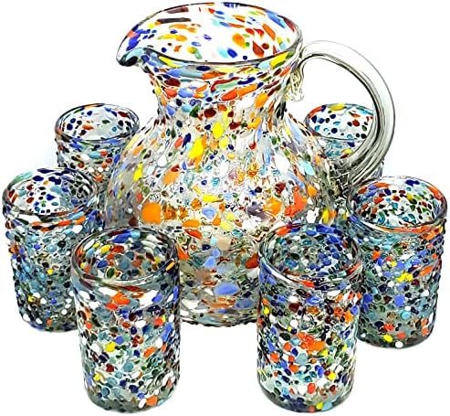 Iced tea preference? What a way to serve it! Pitcher (120 oz) plus 6 14 oz glasses. These works of art were handcrafted by expert glass-blowing artisans in the town of Tonala, Mexico, where families have perfected their craft for centuries. As such, each piece is unique.