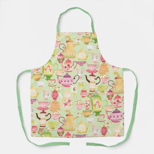 All over print apron, with cute teapots and teacups, on a field of green. Comes in 3 sizes, and is also available in multiple background colors. Can personalize, too!